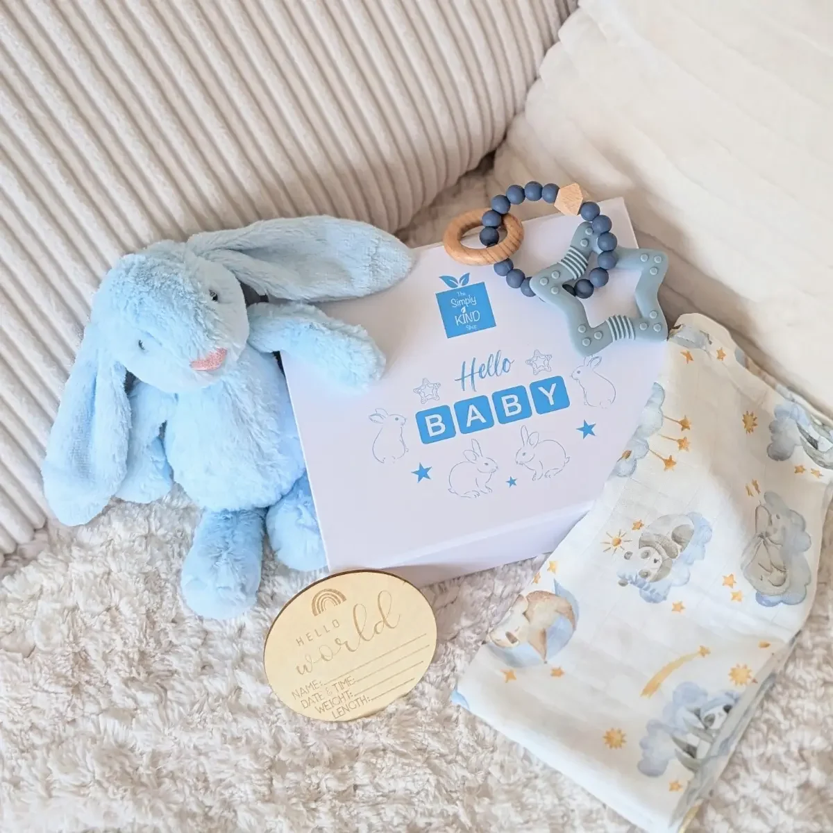Welcome a new arrival with the Blue Bunny Gift Box, a beautifully gentle newborn set designed to celebrate those first precious days. Soft textures, calming tones and thoughtful materials come together to create a comforting, practical and memorable first gift. Perfect for baby boys, gender-neutral gifting, or anyone who loves soft, serene colours.