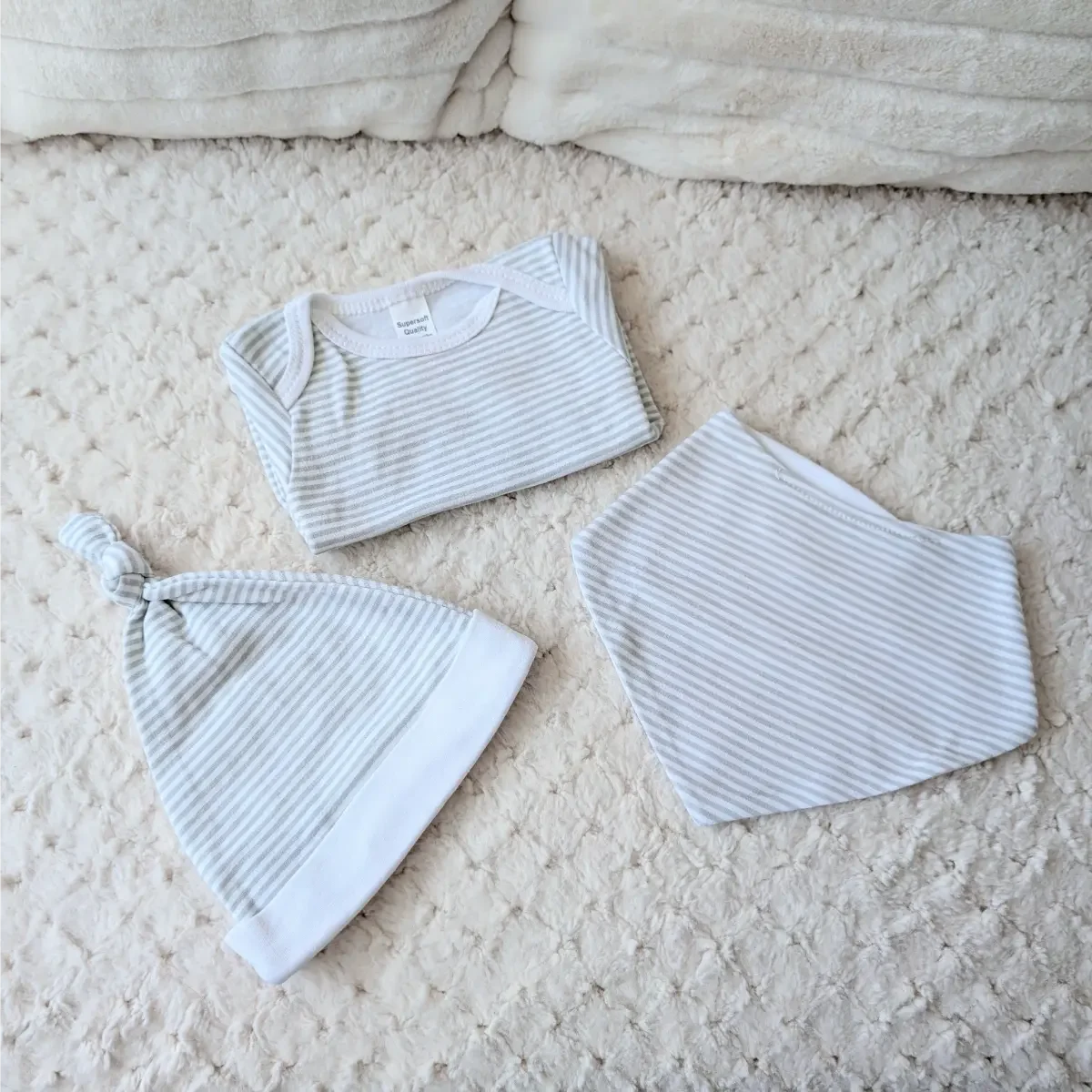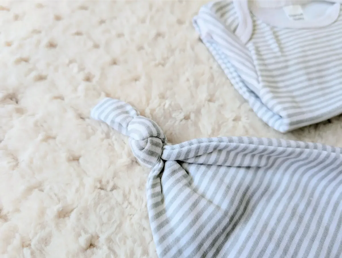 Ribbed knotty hat: 100% recycled cotton ribbed knotty hat – grey and white 0-6 months