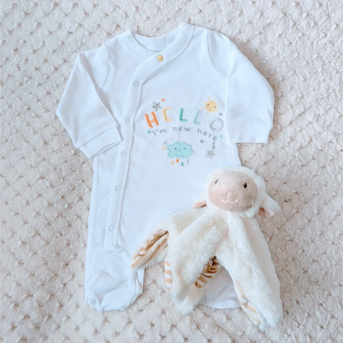 Hello world sleepsuit: 100% soft cotton luxury baby all-in-one sleepsuit 0-3 months
