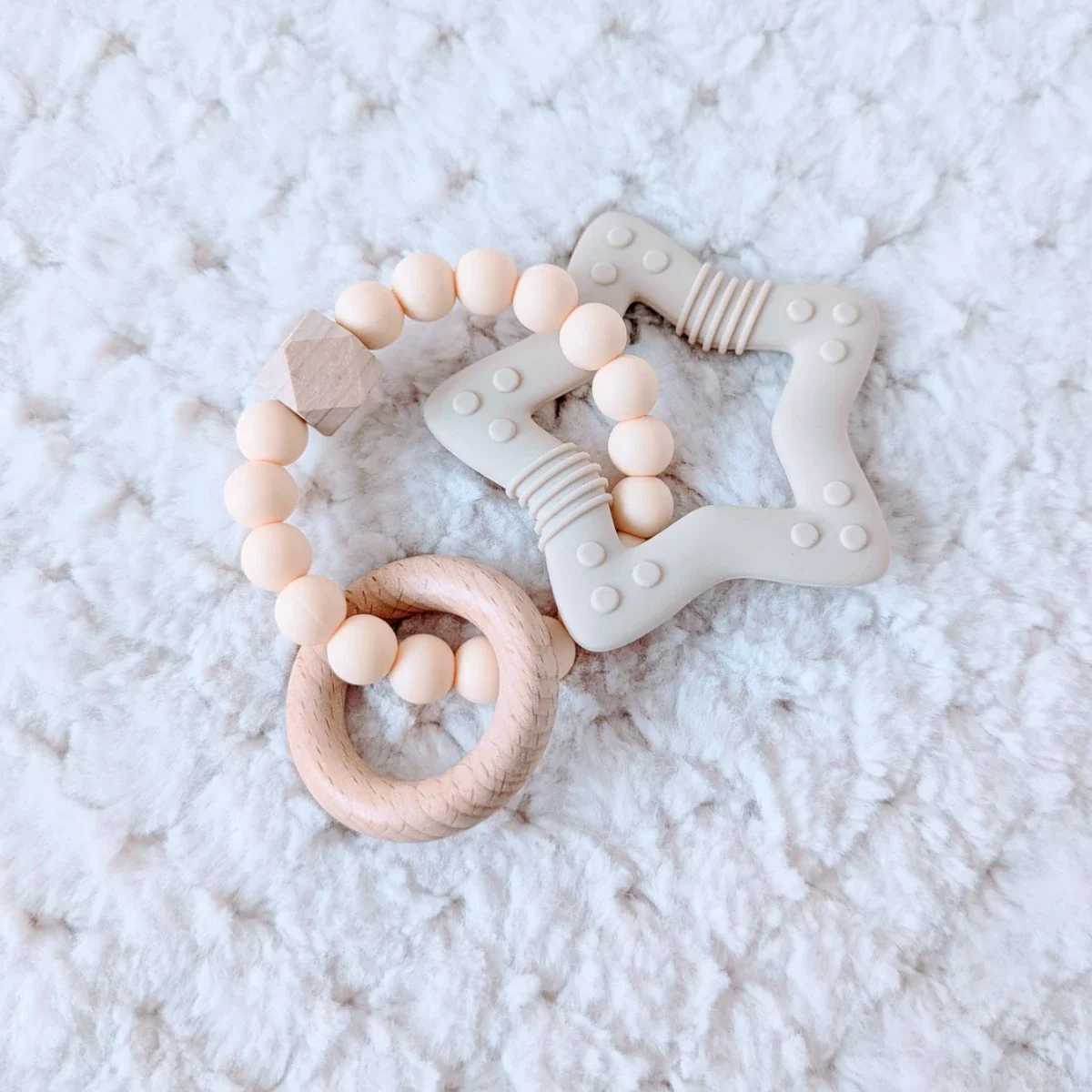 Luxury teether: luxury silicone beaded teether with natural wooden ring